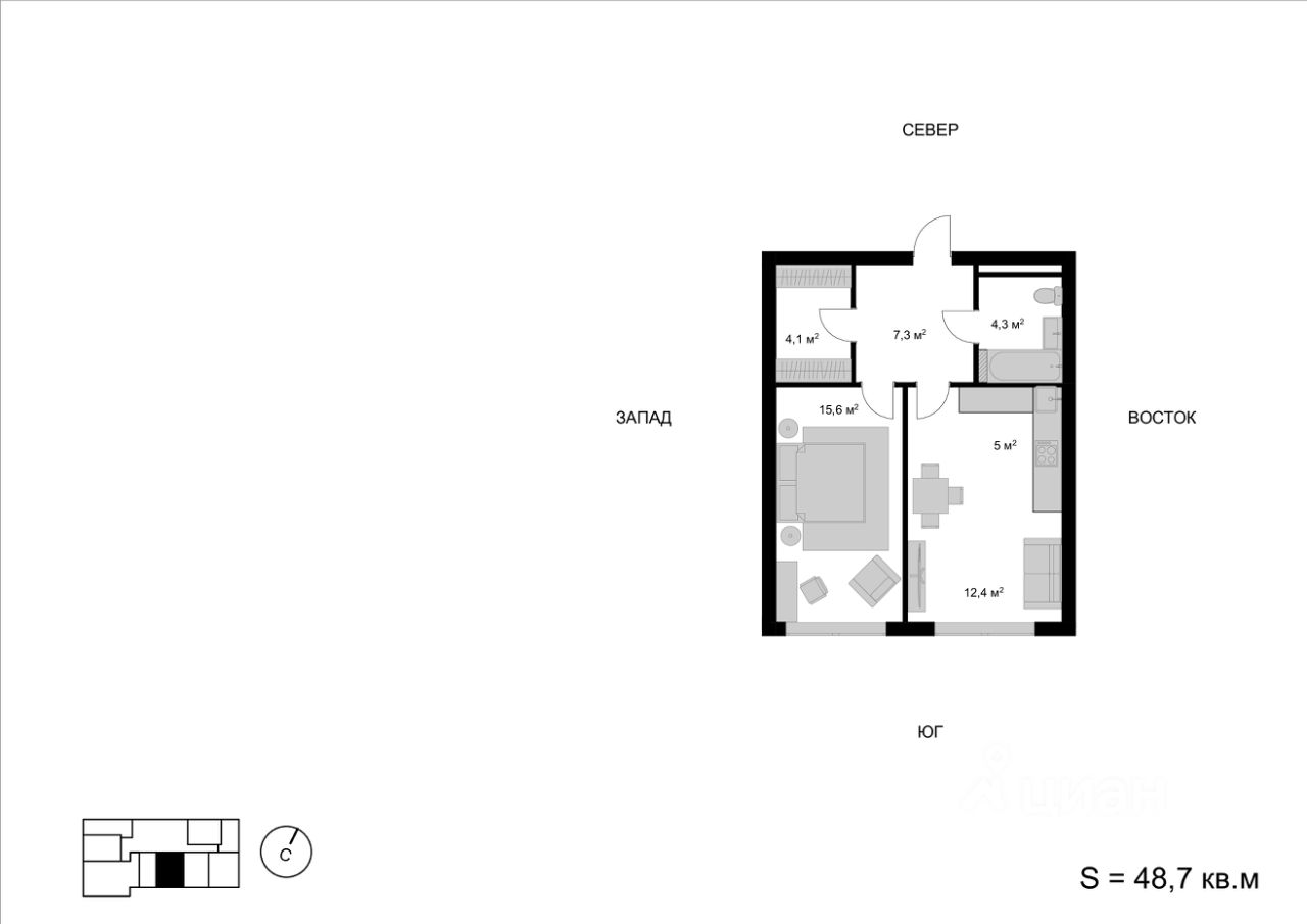 Продаётся 2-комнатная квартира в строящемся доме (Корпус 1), срок сдачи: I-кв. 2026, общей площадью 48.7 кв.м., на 12 этаже. Многоквартирный жилой дом со встроенно-пристроенными нежилыми помещениями и автостоянкой