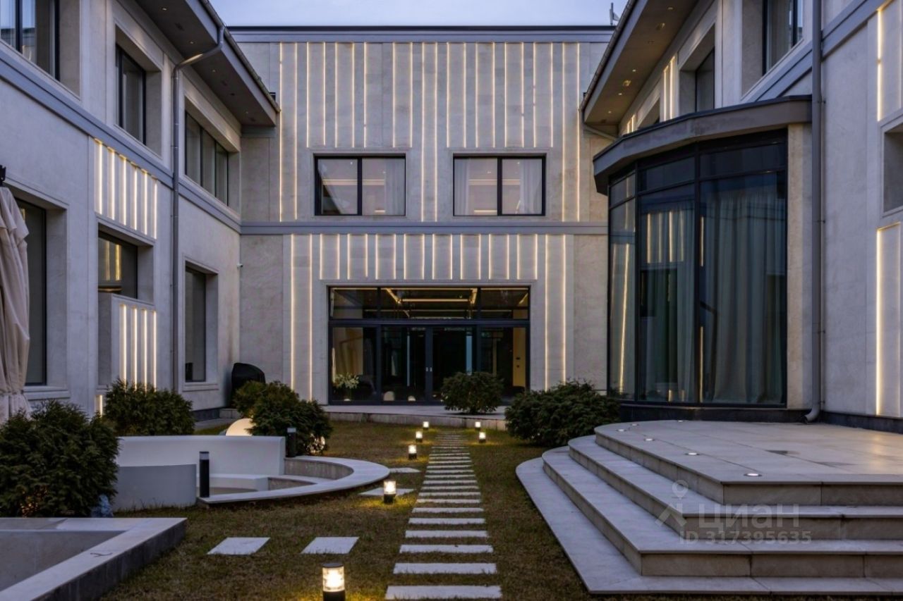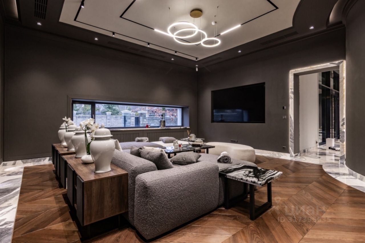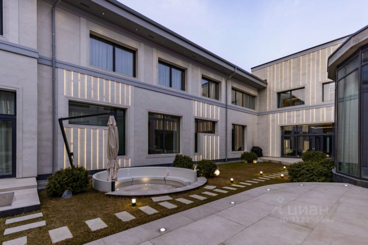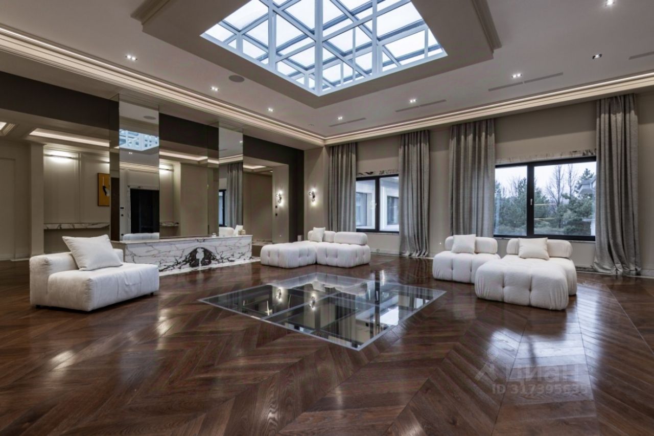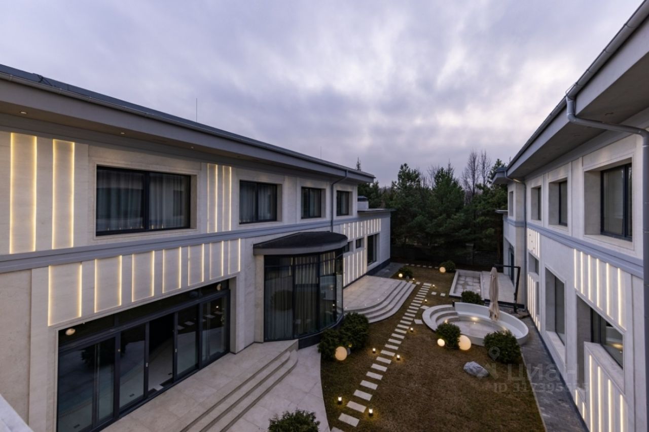 Поселок Речной — это идеальное место для тех, кто ценит спокойную атмосферу и возможность быстро добраться до Москвы, не сталкиваясь с пробками. Это клубный поселок, отвечающий самым высоким требованиям к загородной жизни. Обслуживание поселка осуществляется собственной службой эксплуатации. Цоколь: кинотеатр, с/у, винный погреб, комната отдыха-курительная, черновая кухня, 2 комнаты для персонала с с/у и гардеробными, бойлерная, 3 кладовые комнаты, большая гардеробная с шубной комнатой, гараж на семь автомобилей с кладовой для шин. 1 этаж: прихожая, гардеробная, с/у, холл, гостиная-каминная с двусторонним камином, столовая, кухня с выходом в черновую кухню, комната отдыха-телевизионная, барная зона, спальня с с/у и гардеробной, вторая хозяйская спальня с с/у и гардеробной, с выходом в большую гардеробную в цоколе с массажной и шубной комнатами, будуар с выходом на террасу с фонтаном, зона СПА, бассейн с джакузи, с/у, сауна, спортзал, душевая, выход на террасу. 2 этаж: гостиная с зоной отдыха и барной, двусторонний камин, хозяйская спальня с с/у и гардеробной, с хамамом и выходом на террасу, кабинет с выходом на террасу, лифт, комната для няни с с/у, серверная, детская спальня с с/у и гардеробной, детская спальня с с/у, игровая комната с выходом на террасу.