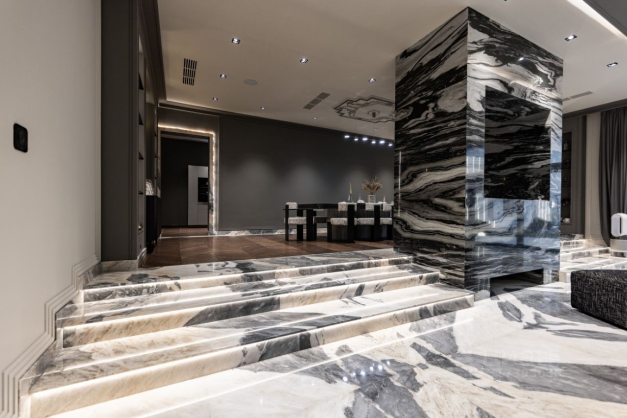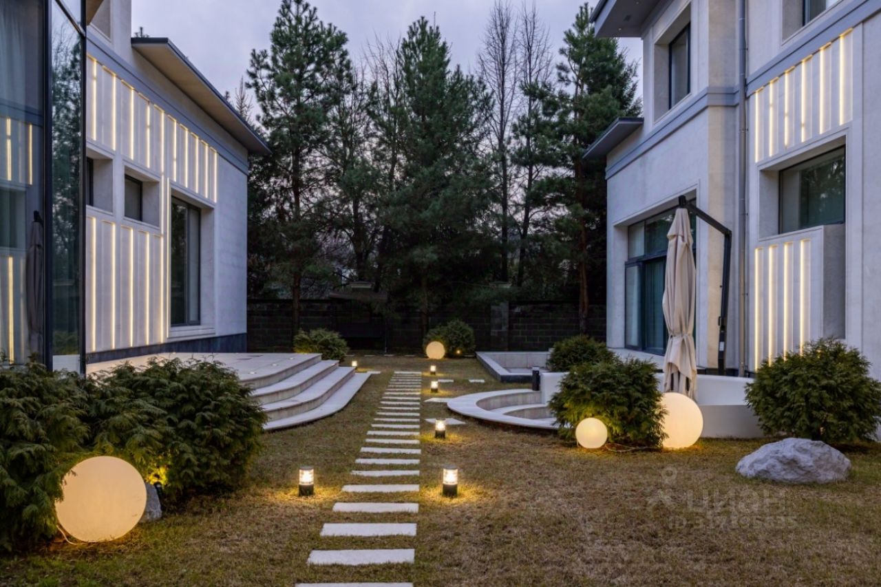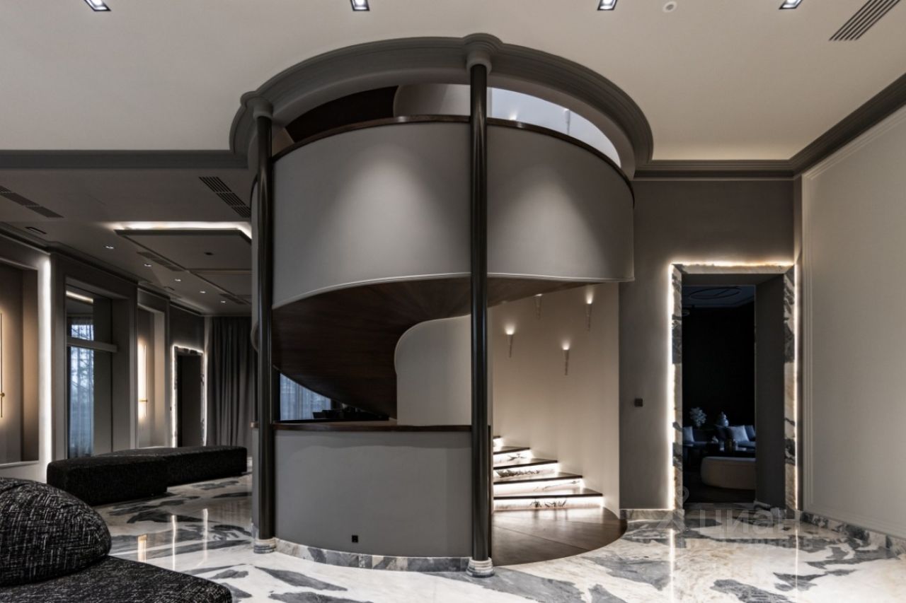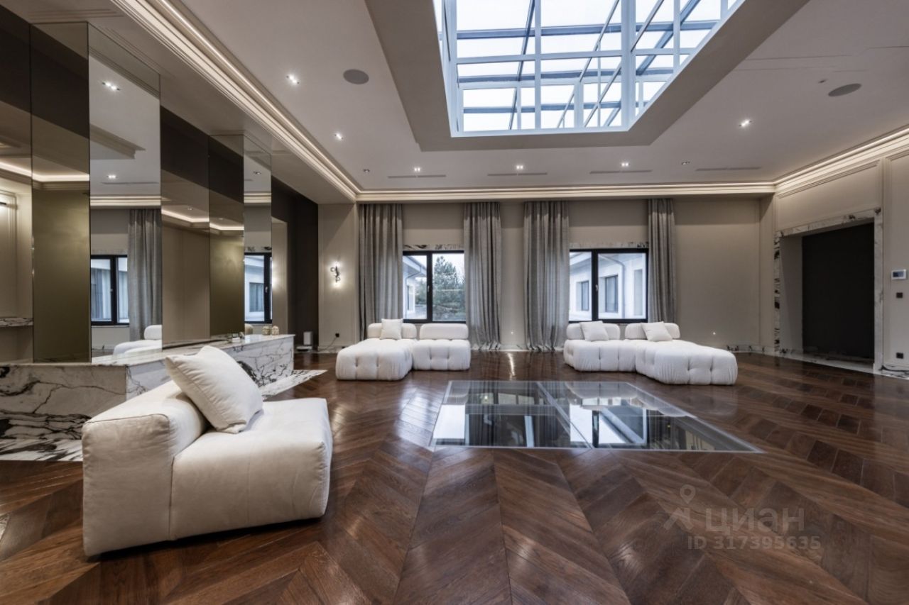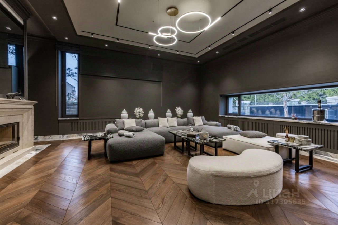 Поселок Речной — это идеальное место для тех, кто ценит спокойную атмосферу и возможность быстро добраться до Москвы, не сталкиваясь с пробками. Это клубный поселок, отвечающий самым высоким требованиям к загородной жизни. Обслуживание поселка осуществляется собственной службой эксплуатации. Цоколь: кинотеатр, с/у, винный погреб, комната отдыха-курительная, черновая кухня, 2 комнаты для персонала с с/у и гардеробными, бойлерная, 3 кладовые комнаты, большая гардеробная с шубной комнатой, гараж на семь автомобилей с кладовой для шин. 1 этаж: прихожая, гардеробная, с/у, холл, гостиная-каминная с двусторонним камином, столовая, кухня с выходом в черновую кухню, комната отдыха-телевизионная, барная зона, спальня с с/у и гардеробной, вторая хозяйская спальня с с/у и гардеробной, с выходом в большую гардеробную в цоколе с массажной и шубной комнатами, будуар с выходом на террасу с фонтаном, зона СПА, бассейн с джакузи, с/у, сауна, спортзал, душевая, выход на террасу. 2 этаж: гостиная с зоной отдыха и барной, двусторонний камин, хозяйская спальня с с/у и гардеробной, с хамамом и выходом на террасу, кабинет с выходом на террасу, лифт, комната для няни с с/у, серверная, детская спальня с с/у и гардеробной, детская спальня с с/у, игровая комната с выходом на террасу.