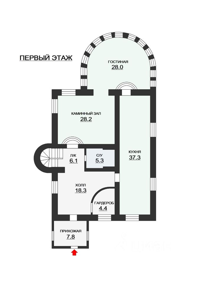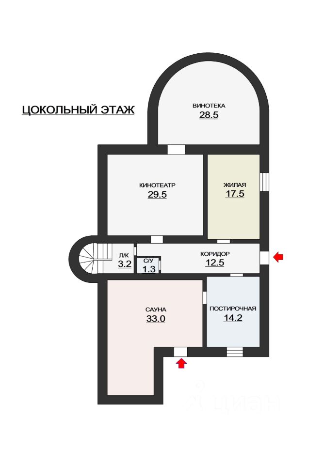 Основной дом состоит из 3х этажей и цокольного этажа. Площадь дома 480 кв.м, Площадь гостиной 56 кв.м., площадь кухни 37 кв.м., максимальное количество спален 7. Количество санузлов 3.