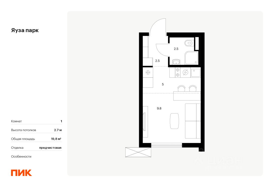 Продаётся квартира-студия площадью 19,8 кв.м на 14 этаже 24 этажного дома (Корпус 10, Секция 1) проекта ПИК Яуза парк. Светлый просторный подъезд на уровне земли, функциональная планировка, большие окна, предчистовая отделка.
