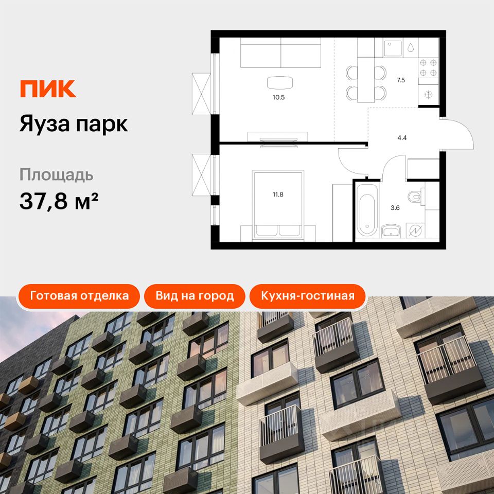 Продаётся 1-комн. квартира площадью 37,8 кв.м на 6 этаже 24 этажного дома (Корпус 6, Секция 1) проекта ПИК Яуза парк. Светлый просторный подъезд на уровне земли, функциональная планировка, большие окна, c отделкой.