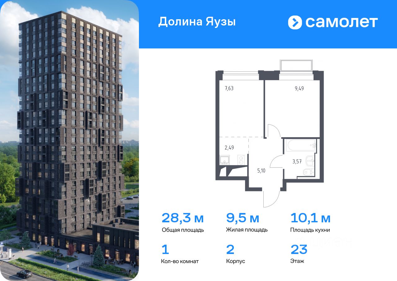 Предлагается 1-комнатная квартира комфорт-класса 28,28 кв.м в корпусе 2 на 23 этаже, в ЖК ''Долина Яузы'' Квартира без отделки. Доступность опции ''отделка'' и возможность комплектации мебелью и декором уточняйте у застройщика.