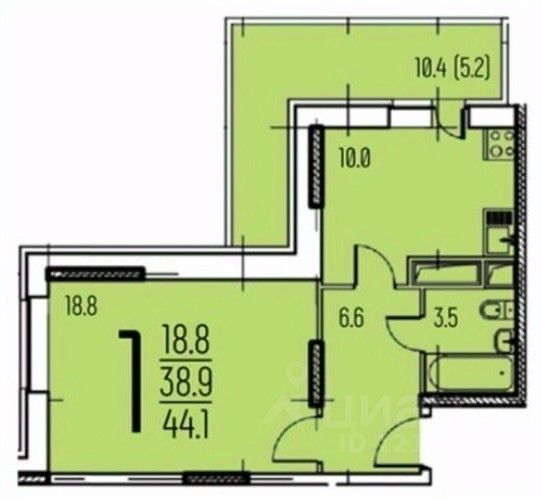 Квартира свободной планировки продаётся без отделки, имеет большую просторную лоджию, площадь которой составляет 15,6 м2