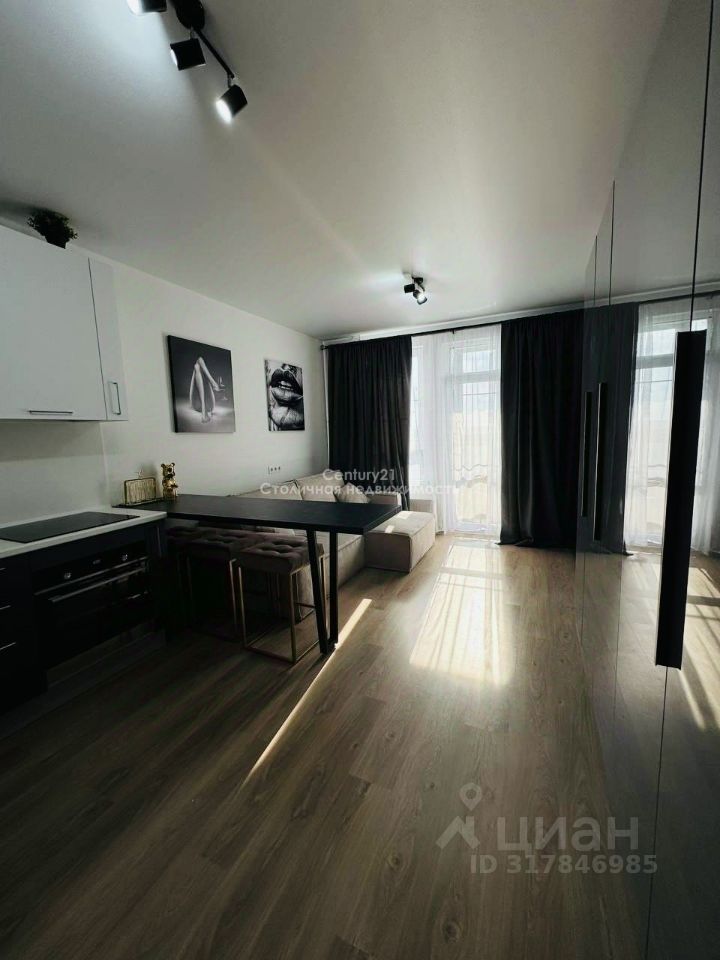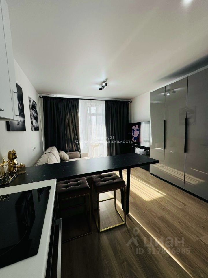 Арт. 102642911 Большая Студия. Большая Лоджия. Продаётся светлая просторная Студия с большой оборудованной лоджией в зелёном спокойном районе города. Квартира полностью готова к проживанию. Современный дизайнерский подход. Вся техника и мебель новая. Огромное количество шкафов для хранения. Стиральная машина с сушкой. Микроволновая печь, духовой шкаф. Большой Smart TV. В квартире есть вся необходимая посуда. Установлен кондиционер.
