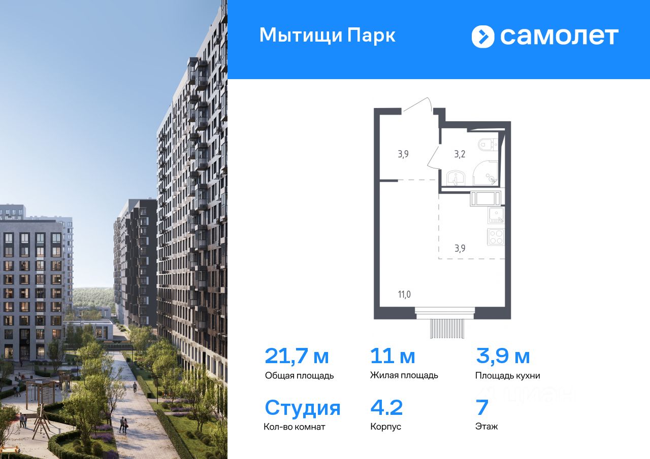Предлагается квартира студия комфорт-класса 21,7 кв.м в корпусе 4.2 на 7 этаже, в ЖК ''Мытищи Парк''
