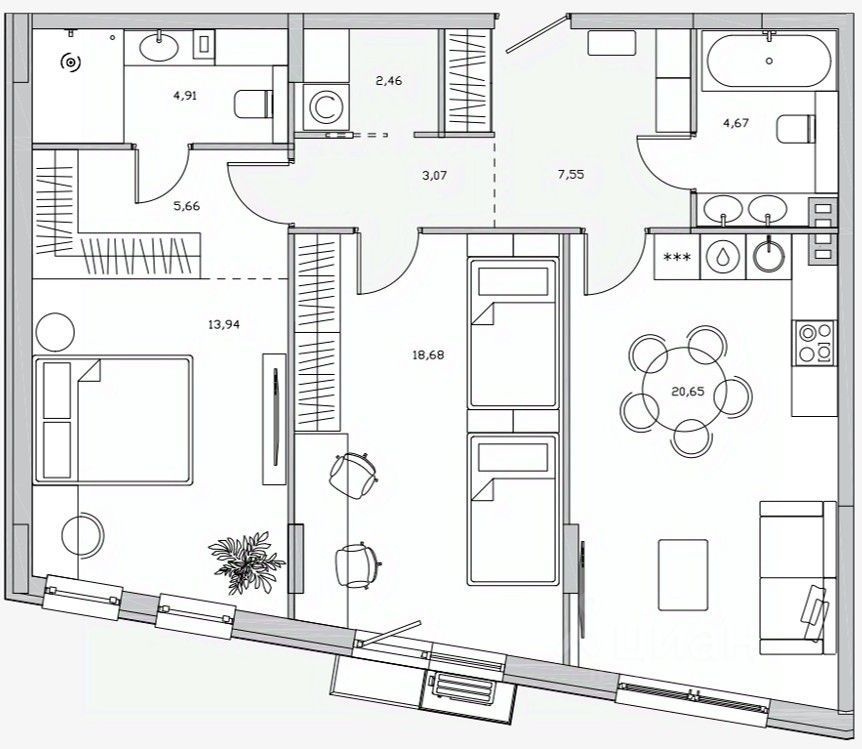 Квартира без отделки в клубном доме ''Эльйон'' в Одинцовском районе. Свободная планировка, высота потолка 3,1 м. Доступен заказ отделки под ключ или white box.