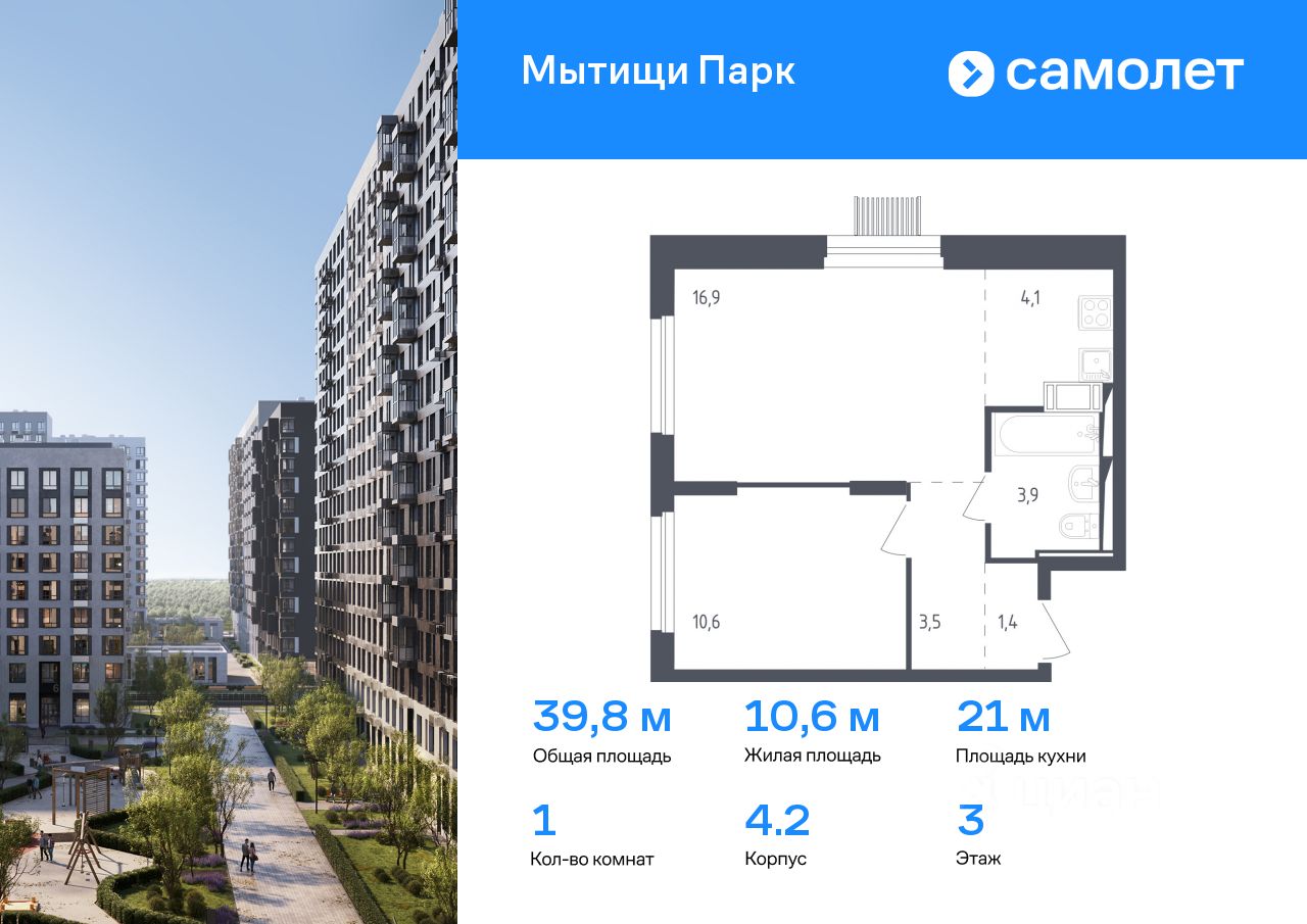 Предлагается 1-комнатная квартира комфорт-класса 39,8 кв.м в корпусе 4.2 на 3 этаже, в ЖК ''Мытищи Парк''
