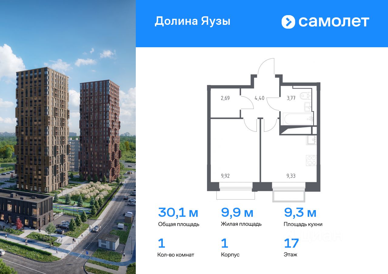 Предлагается 1-комнатная квартира комфорт-класса 30,11 кв.м в корпусе 1 на 17 этаже, в ЖК ''Долина Яузы'' Квартира с чистовой отделкой. Доступность дополнительных опций уточняйте у застройщика.