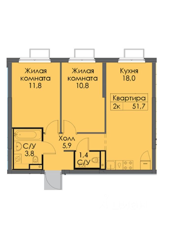 Продается двухкомнатная квартира 51,7кв.м. в проекте Яуза парк расположенную на 19эт/ 25 этажной секции дома корп.3. Квартира с отделкой. Планировка линейная, комнаты изолированные 11,8 - 10,8кв.м. Кухня гостиная 18кв.м. Два санузла. На территории жилого квартала появится школа и несколько детских садов, поликлиника и паркинг для безопасной стоянки автомобилей, пешеходный бульвар и благоустроенная набережная реки Яуза для прогулок и отдыха всей семьёй.