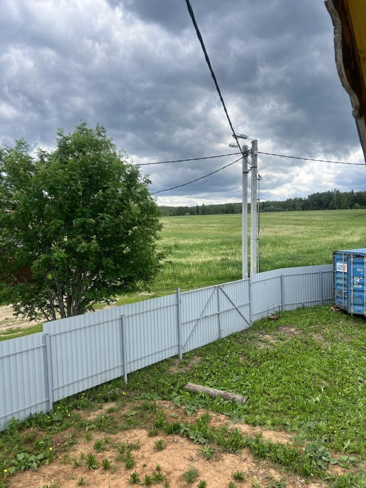 Огорожен со всех сторон забором, есть ворота для заезда машины. Плодово-ягодные насаждения. Хороший подъезд, по асфальтированной дороге и 300 метров грунтовой, чистят круглый год.