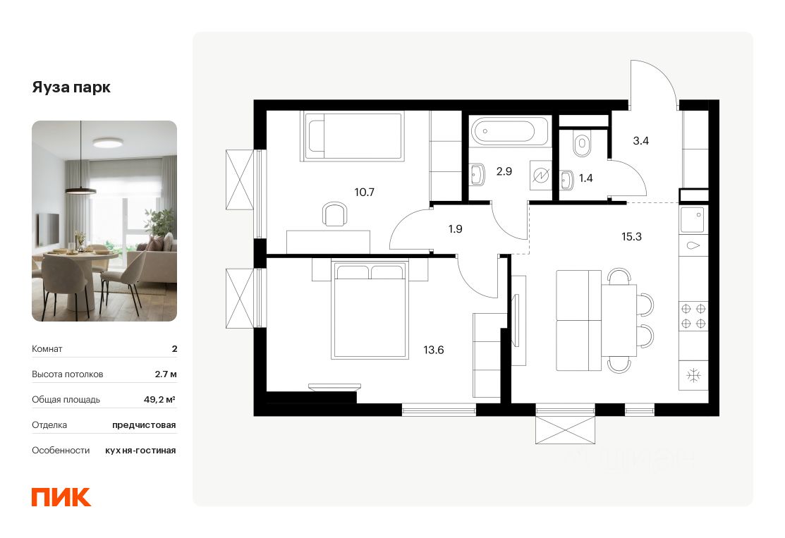 Общая площадь49,2 м2