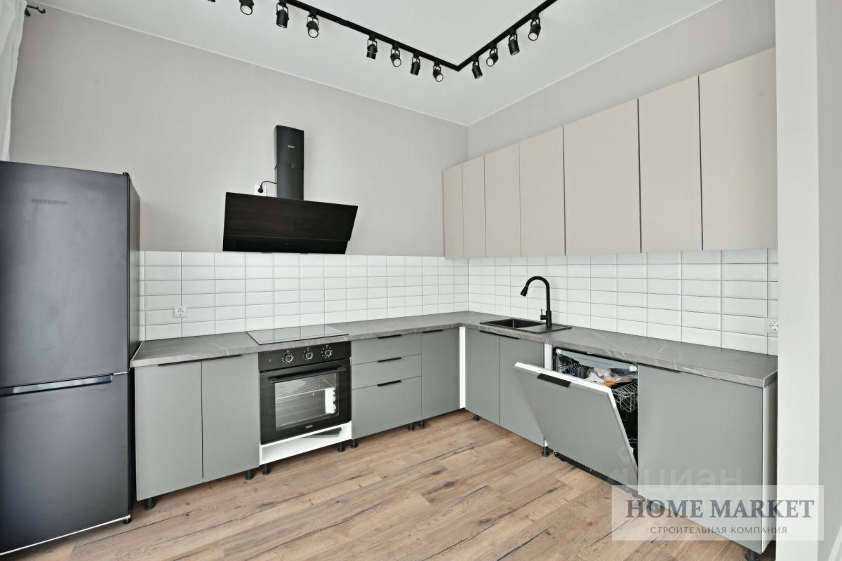 Дом оборудован новым кухонным гарнитуром с встроенной бытовой техникой: духовой шкаф, вытяжка, холодильник, посудомоечная машина 60см.