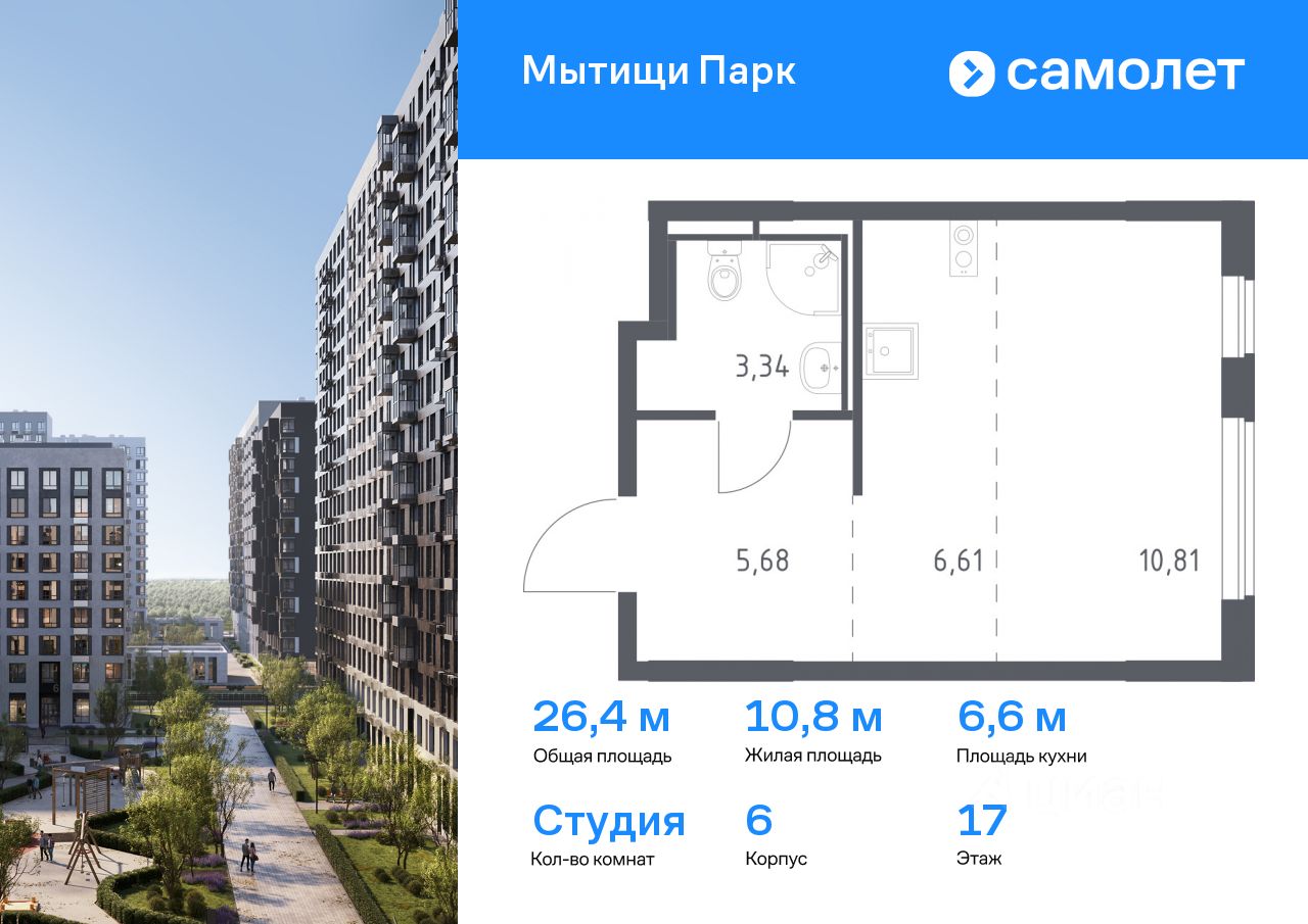 Предлагается квартира студия комфорт-класса 26,44 кв.м в корпусе 6 на 17 этаже, в ЖК ''Мытищи Парк''
