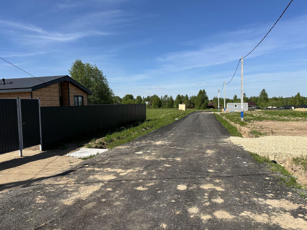 На территории поселка дороги из асфальтовой крошки с бордюром и освещением.