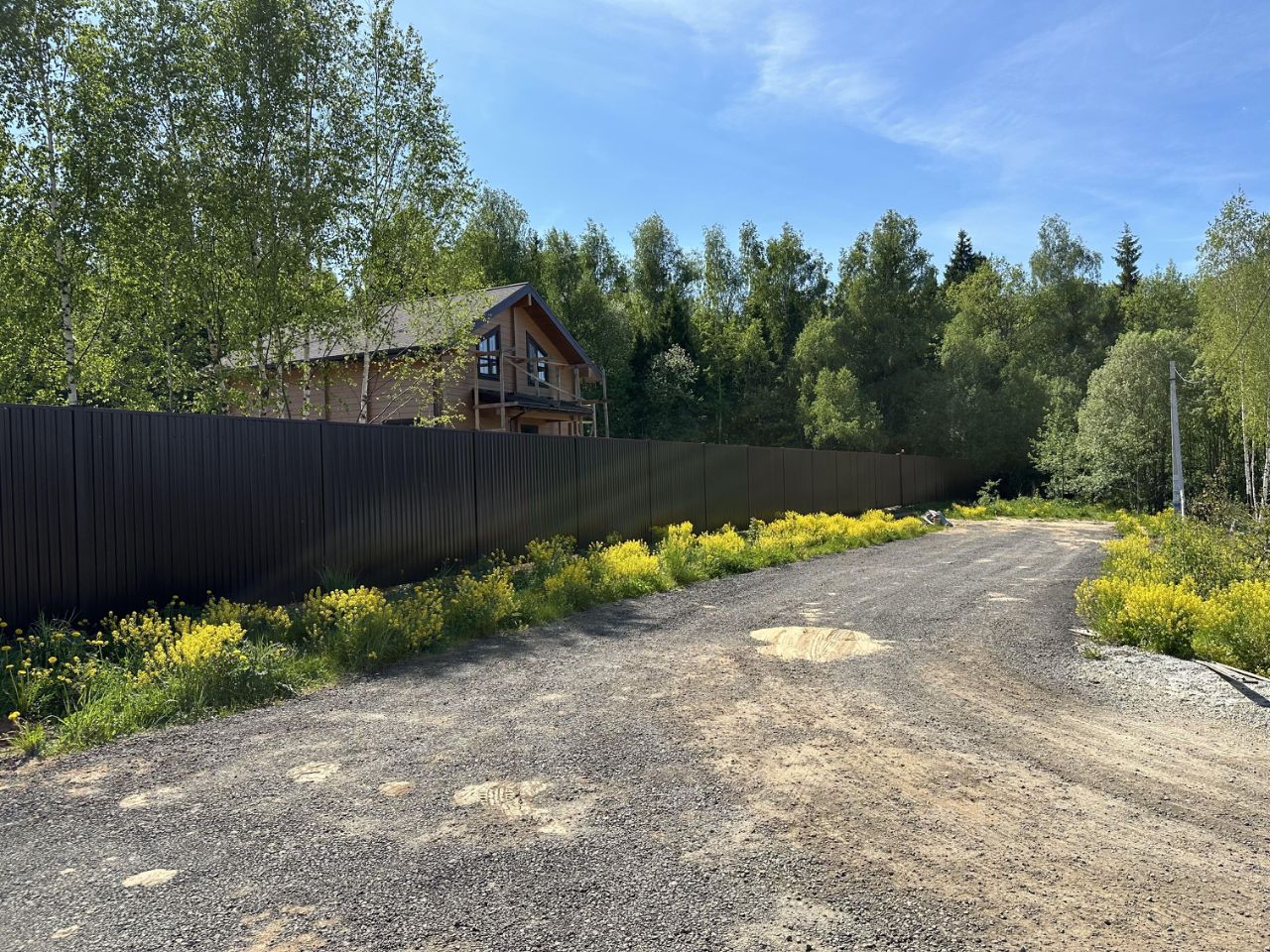 Поставлен шлагбаум на въезде и фасадный забор.