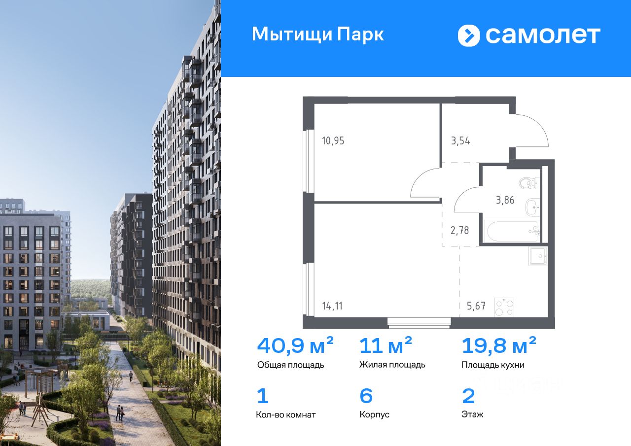 Предлагается 1-комнатная квартира комфорт-класса 40,91 кв.м в корпусе 6 на 2 этаже, в ЖК ''Мытищи Парк''