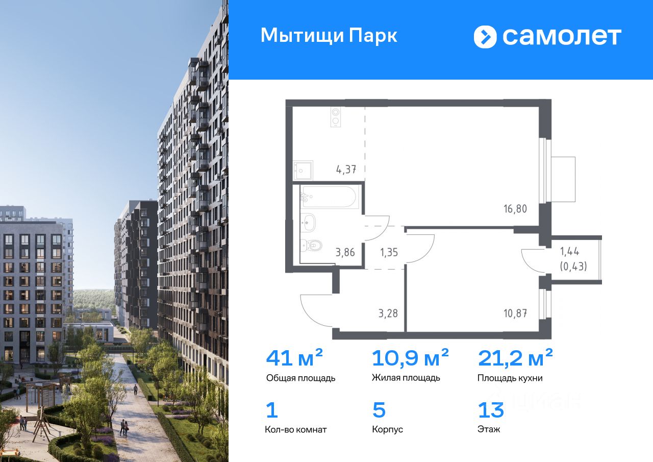 Строим кварталы для жизни с заботой о будущем. Предлагается 1-комнатная квартира комфорт-класса 40,96 кв.м в корпусе 5 на 13 этаже, в ЖК ''Мытищи Парк'' Квартира без отделки. Доступность опции ''отделка'' и возможность комплектации мебелью и декором уточняйте у застройщика.