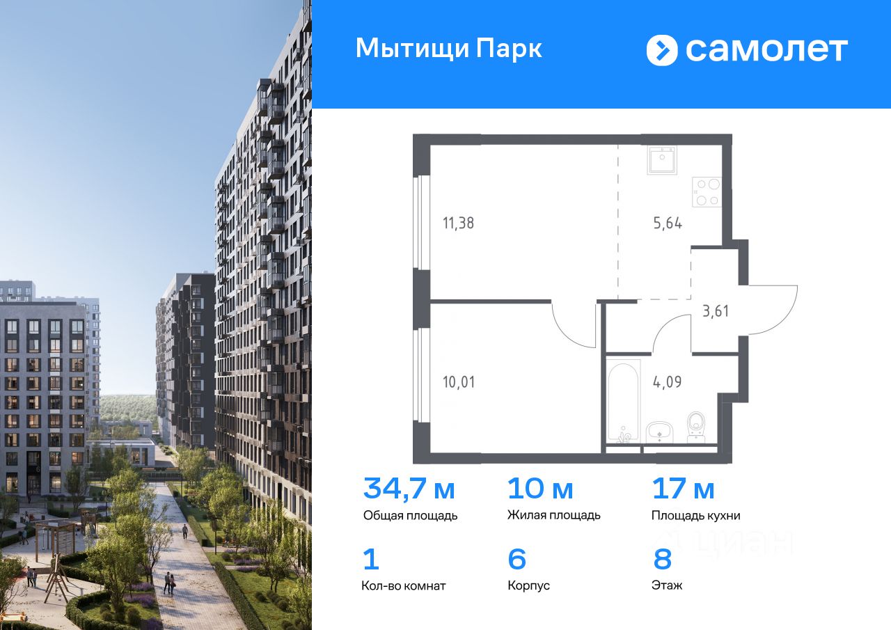 Предлагается 1-комнатная квартира комфорт-класса 34,73 кв.м в корпусе 6 на 8 этаже, в ЖК ''Мытищи Парк''