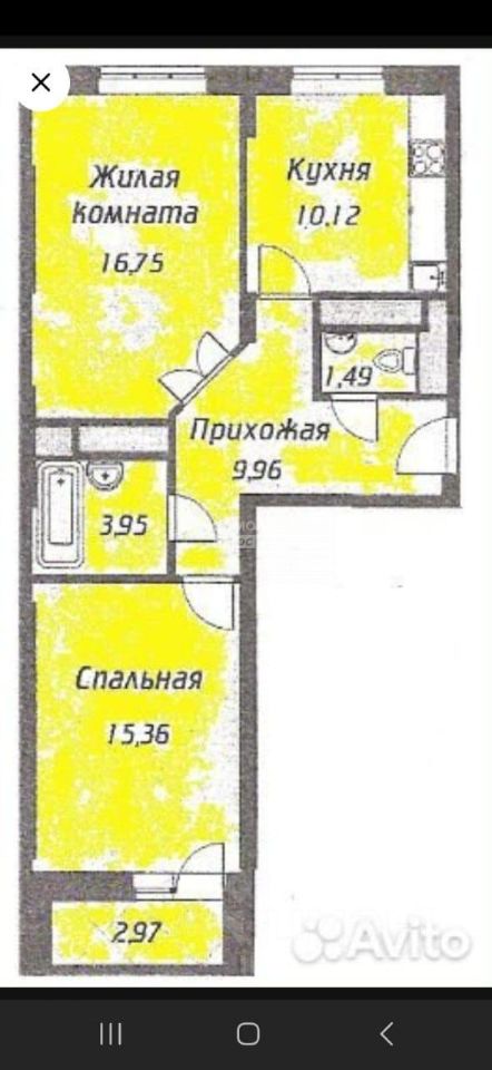 Общая площадь квартиры 59,6 м2 (без учета лоджии), две жилых комнаты правильной формы 16,8 м2 и 15,4 м2, кухня 10 м2, большая застекленная лоджия с выходом из спальни, раздельный санузел.