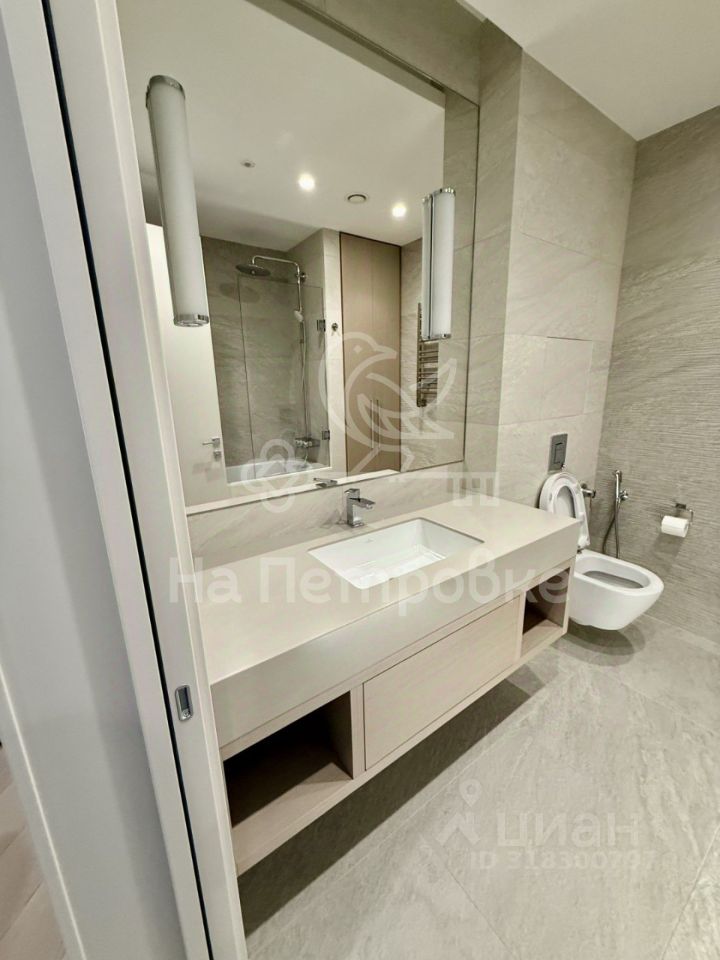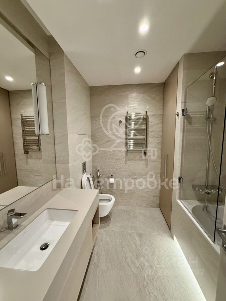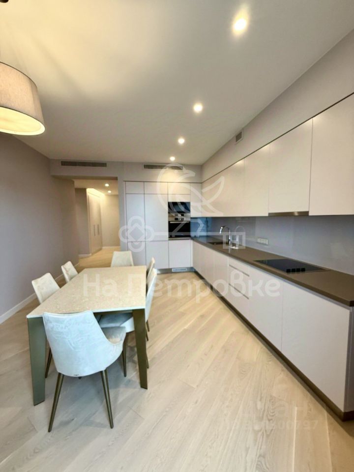 В квартире выполнен дизайнерский ремонт с использованием дорогих отделочных материалов: паркетная доска Karelia Oak Story, керамогранит Atlas. Кухня укомплектована бытовой техникой Bosch, в гостевом с/у стиральная и сушильная машины Bosch. Установлена единая система кондиционирования Mitsubishi Electric, позволяющая с пульта управления контролировать и менять как температуру воздуха, так и воздухоподачу. Зона кухни и гостиной имеет выход на большую застекленную лоджию. Две спальни со встроенными гардеробными и своими совмещенными с/у. Высота потолков 3,10м, что создает ощущение дополнительного пространства и добавляет квартире больше света. Окна выходят во внутренний двор-парк.