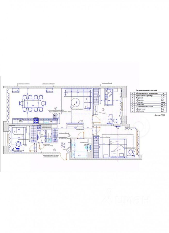 Общая площадь 100 м2. 4/6 этаж дома (панельного/кирпичного дома. - дизайнерский ремонт: - выровнены стены и пол, усилена шумоизоляция, - новая проводка, счетчики, трубы, - входная дверь с усиленной защитой, надежные замки, - пластиковые стеклопакеты на всех окнах, - пластиковое остекление балкона, - индивидуальный дизайнерский проект, - качественная импортная мебель, - натяжные потолки, - плитка, теплый пол, - в ванной кафель душевая кабина. современная стиральная машина, - остается мебель: встроенная/дизайнерская кухня со всей необходимой бытовой техникой (перечислить), - посудомоечная машина, - кондиционер, - проведен интернет, кабельное ТВ провайдер ().