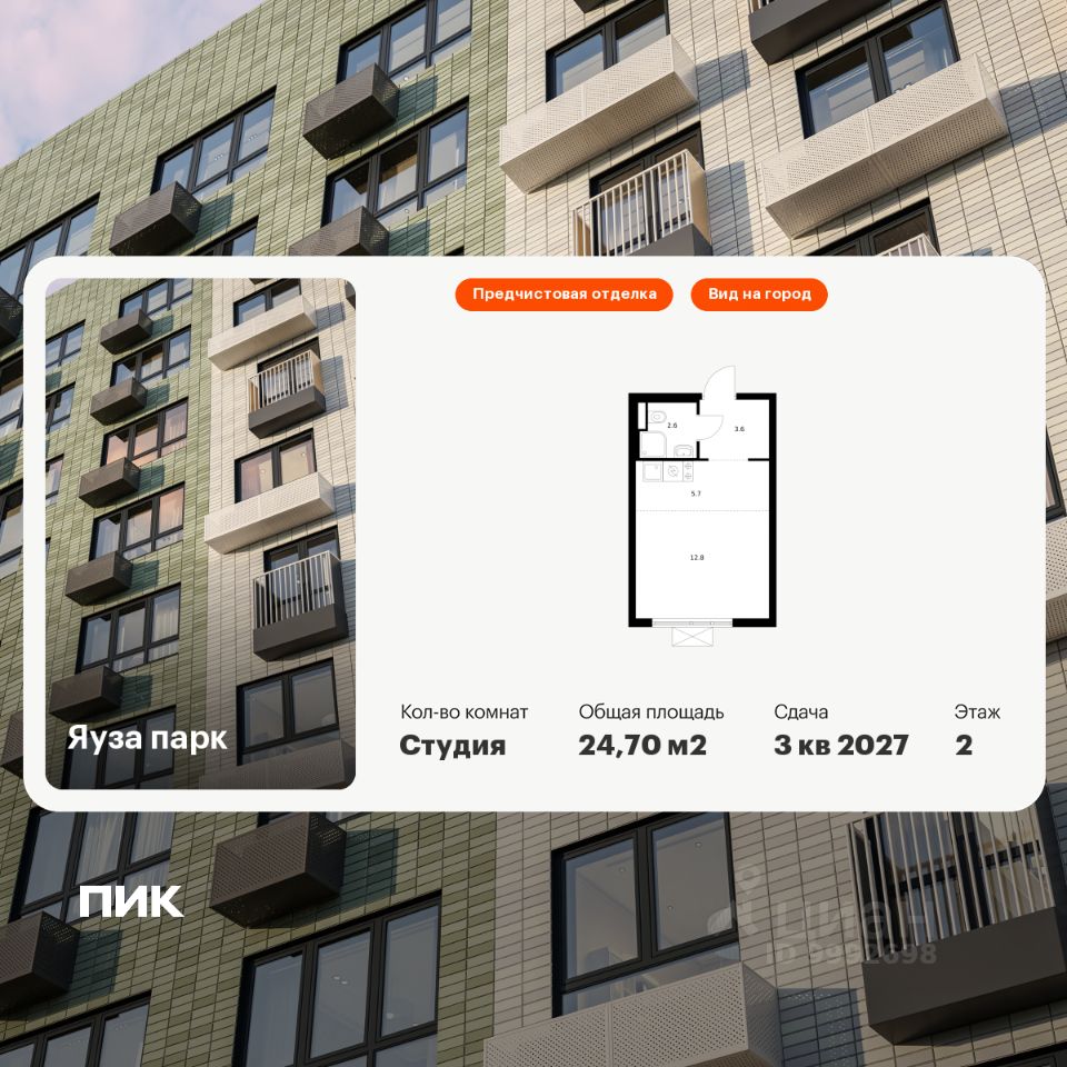 Продаётся квартира-студия площадью 24,7 кв.м на 2 этаже 24 этажного дома (Корпус 8, Секция 1) проекта ПИК Яуза парк. Светлый просторный подъезд на уровне земли, функциональная планировка, большие окна, предчистовая отделка.