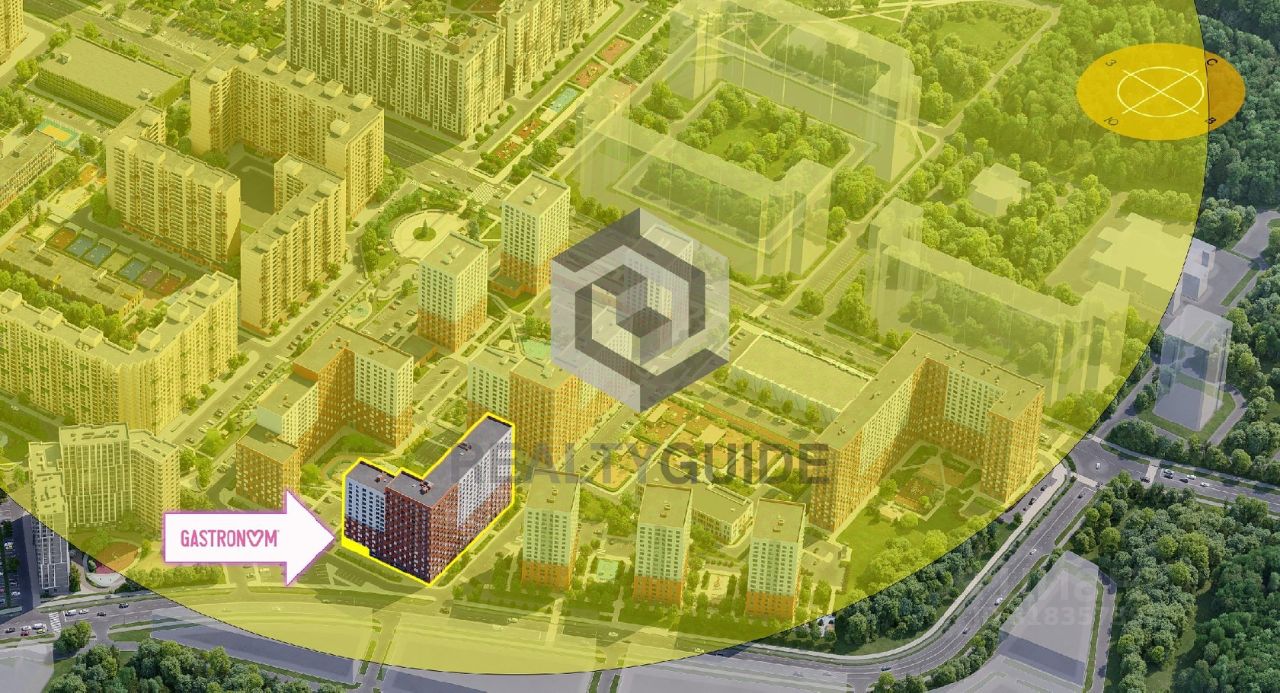 ГАБ коммерческие показатели: Торцевое помещение с витринными окнами на три стороны дома. Выходит на окружную дорогу вокруг всего ЖК. Напротив остановки транспорта.