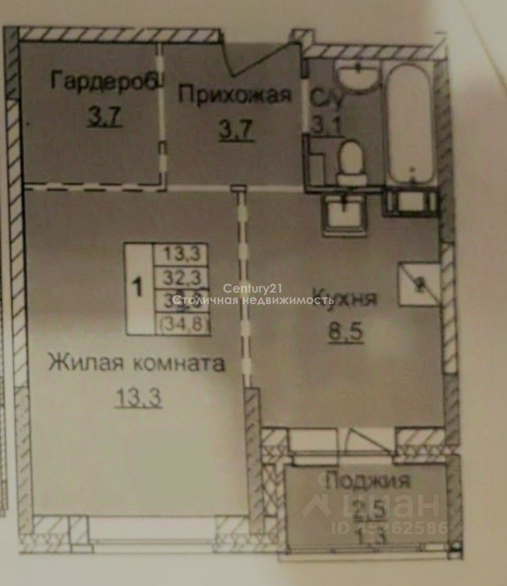 Квартира современной планировки: 1-комнатная, кухня 8,5 кв.м., комната 13 кв.м., коридор+ просторная лоджия! Комната изолированная, санузел совмещенный. Аккуратная, светлая, квартира, 32,3 кв.м., в санузле установлена необходимая сантехника.