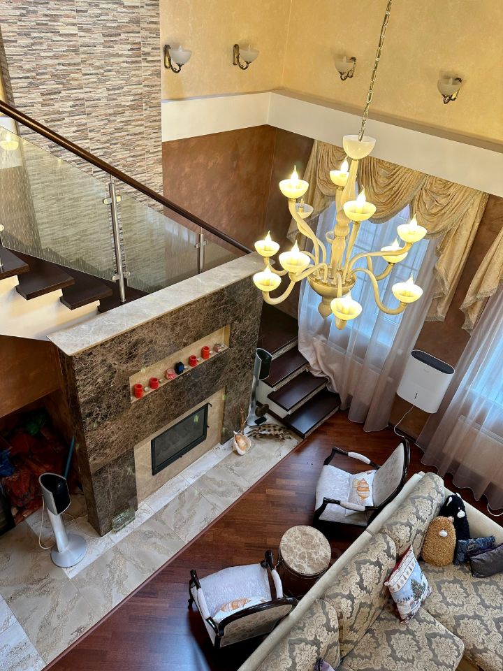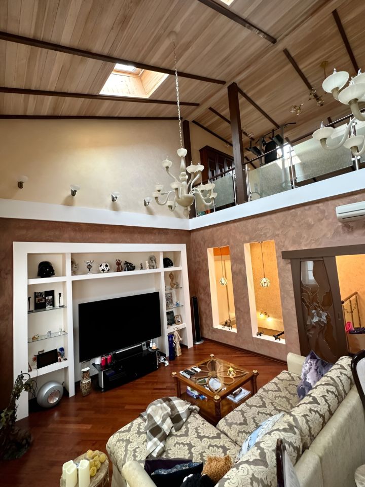 Полностью обставленные комнаты: 2 спальни, 2 детских комнаты, кухня-столовая, гостиная со вторым светом и электрическими шторами-жалюзи, кабинет-библиотека на мансардном этаже.