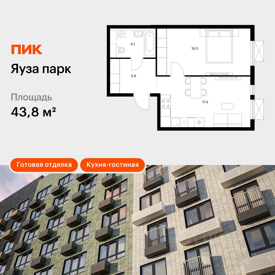 Продаётся 1-комн. квартира площадью 43,8 кв.м на 11 этаже 24 этажного дома (Корпус 6, Секция 1) проекта ПИК Яуза парк. Светлый просторный подъезд на уровне земли, функциональная планировка, большие окна, c отделкой.