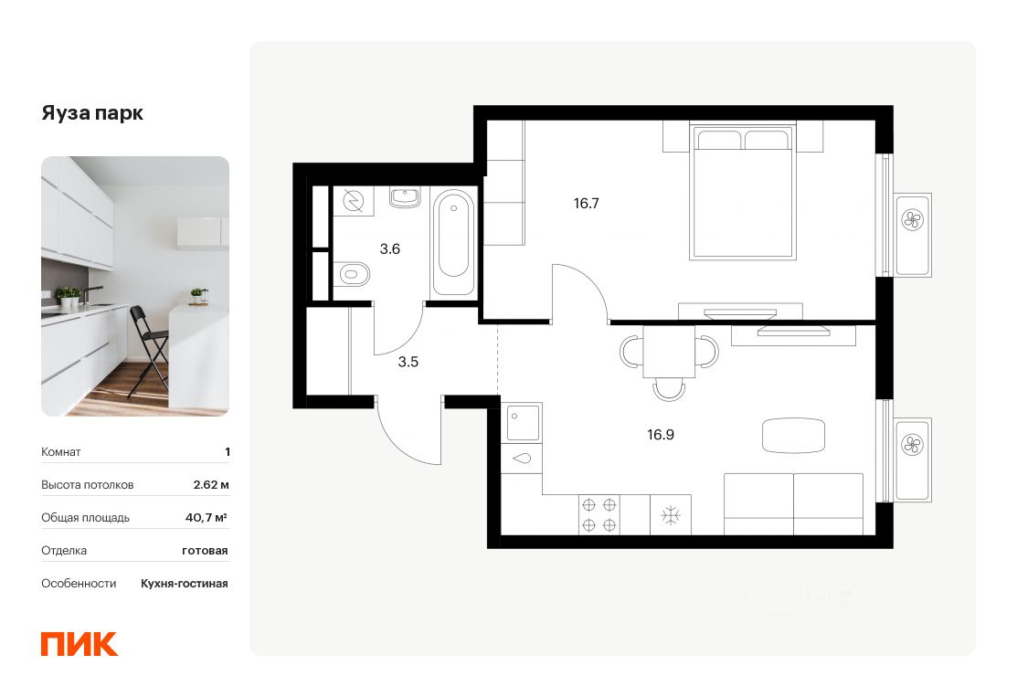 Продаётся 1-комн. квартира площадью 40,7 кв.м на 20 этаже 25 этажного дома (Корпус 11, Секция 1) проекта ПИК Яуза парк. Светлый просторный подъезд на уровне земли, функциональная планировка, большие окна, c отделкой.