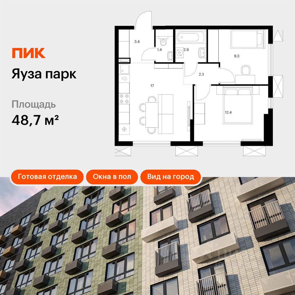 Продаётся 2-комн. квартира площадью 48,7 кв.м на 20 этаже 24 этажного дома (Корпус 5, Секция 1) проекта ПИК Яуза парк. Светлый просторный подъезд на уровне земли, функциональная планировка, большие окна, c отделкой.