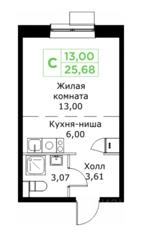 Общая площадь25,6 м2
