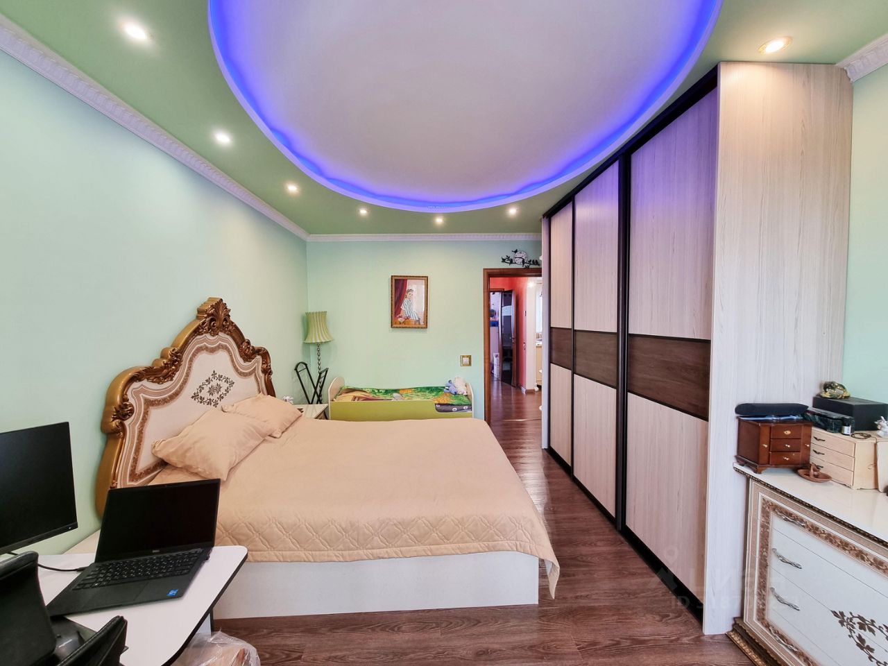 В квартире выполнен качественный ремонт в стиле барокко, несколько сценариев освещения, полы с подогревом, установлена система фильтрации воды, кухонный гарнитур под единой столешницей, оснащен встроенной техникой (варочная панель, вытяжка, духовой шкаф, микроволновая печь, посудомоечная машина).