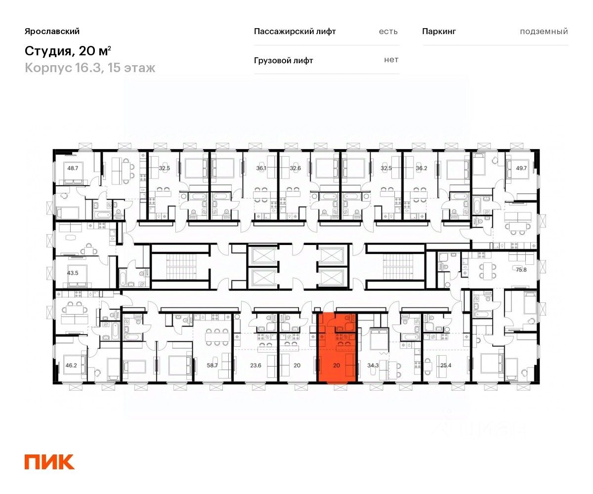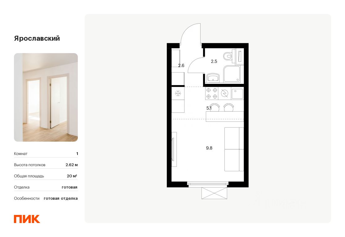 Продаётся квартира-студия площадью 20 кв.м на 15 этаже 25 этажного дома (Корпус 16.3, Секция 3) проекта ПИК Ярославский. Светлый просторный подъезд на уровне земли, функциональная планировка, большие окна, c отделкой.