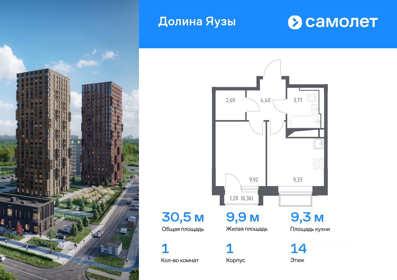 Предлагается 1-комнатная квартира комфорт-класса 30,47 кв.м в корпусе 1 на 14 этаже, в ЖК ''Долина Яузы'' Квартира с чистовой отделкой. Доступность дополнительных опций уточняйте у застройщика.