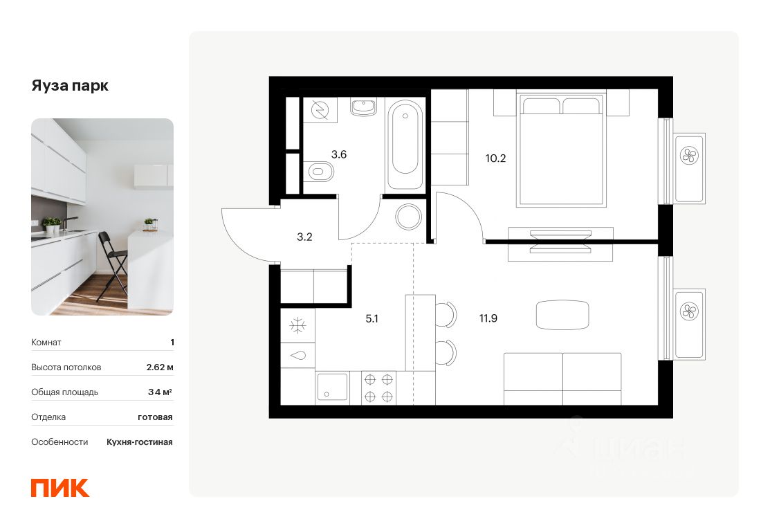 Продаётся 1-комн. квартира площадью 34 кв.м на 16 этаже 25 этажного дома (Корпус 11, Секция 1) проекта ПИК Яуза парк. Светлый просторный подъезд на уровне земли, функциональная планировка, большие окна, c отделкой.