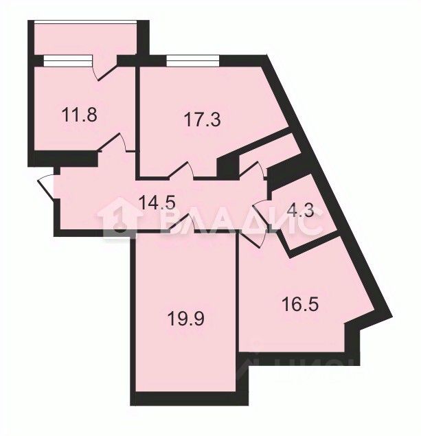 Три изолированные комнаты с площадями 17,3 кв. м, 16,5 кв. м и 19,9 кв.
