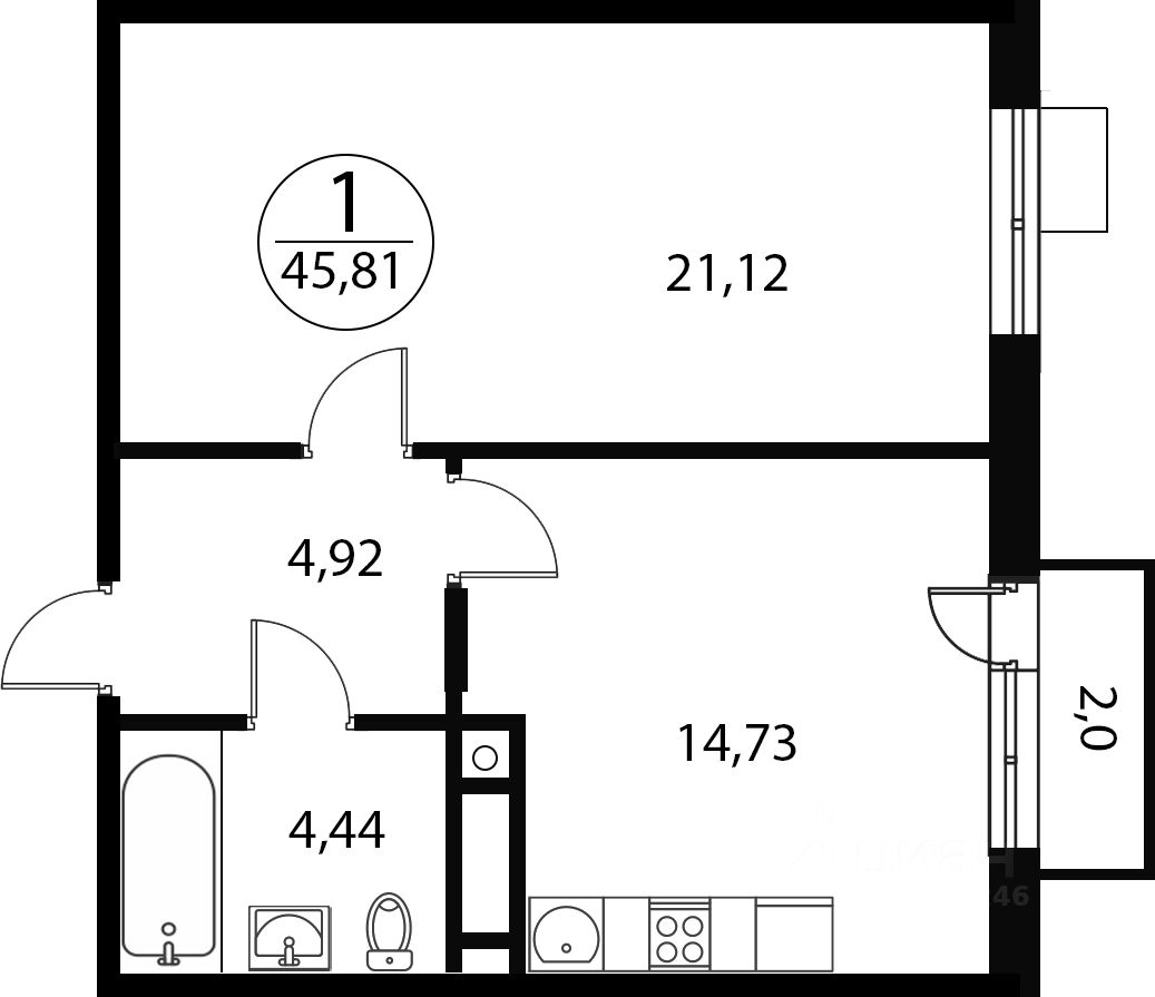 продам 1-к, Катуар ЖК, 38 080 884 ₽