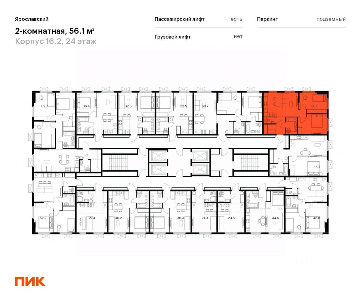 Продаётся 2-комн. квартира площадью 56,1 кв.м на 24 этаже 25 этажного дома (Корпус 16.2, Секция 2) проекта ПИК Ярославский. Светлый просторный подъезд на уровне земли, функциональная планировка, большие окна, c отделкой.