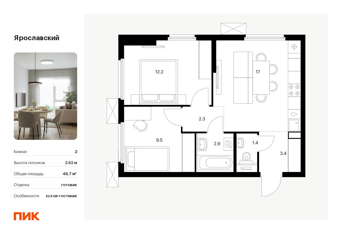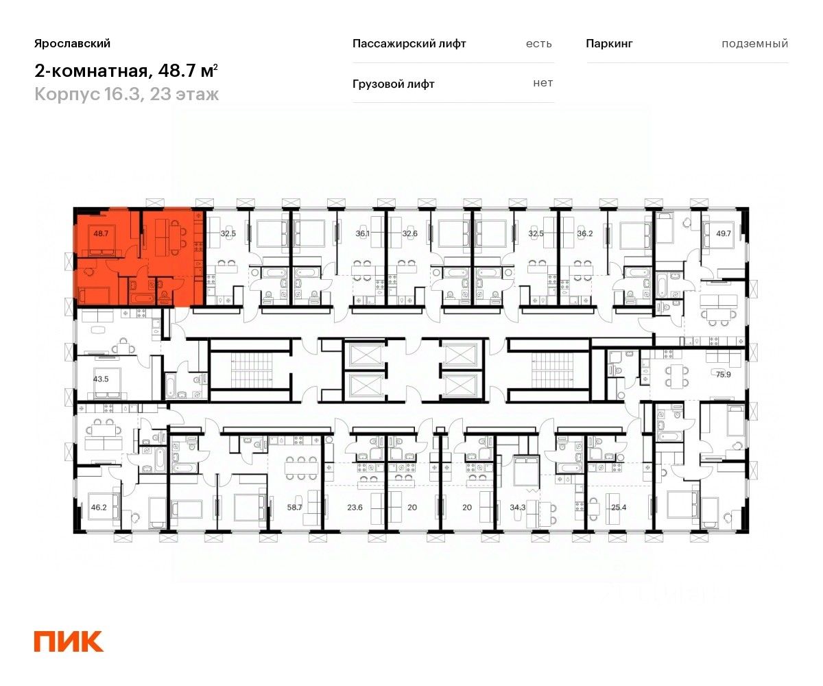 Продаётся 2-комн. квартира площадью 48,7 кв.м на 23 этаже 25 этажного дома (Корпус 16.3, Секция 3) проекта ПИК Ярославский. Светлый просторный подъезд на уровне земли, функциональная планировка, большие окна, c отделкой.