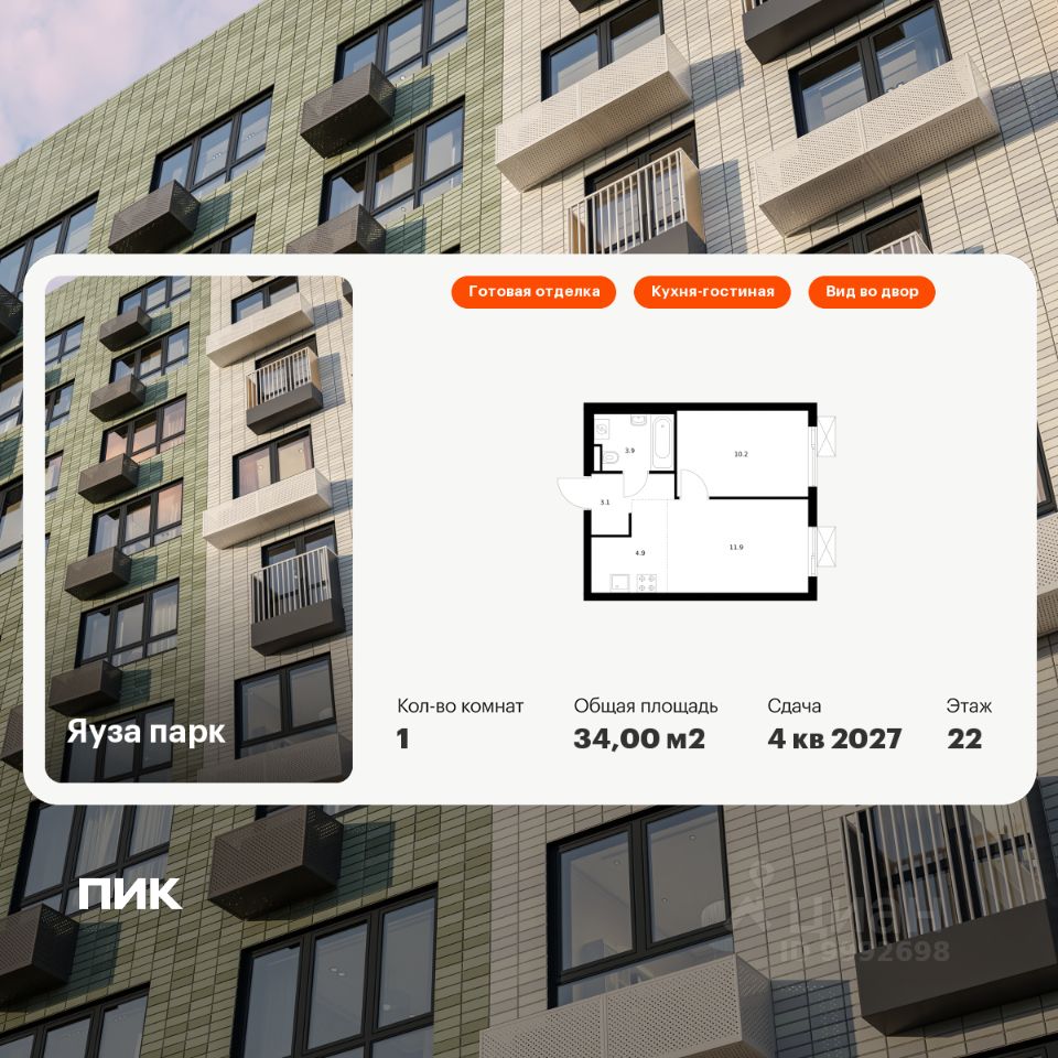 продам 1-к, Яуза Парк ЖК, 711 301 600 ₽