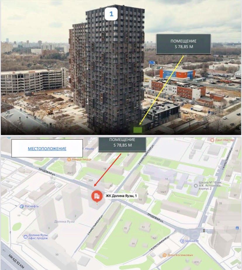 Предлагается помещение 78,85 кв м в новом строящемся ЖК ''Долина Яузы'' расположенное в стилобатной части вдоль улицы Трудовая, которая привлечет в т ч жителей старого фонда.