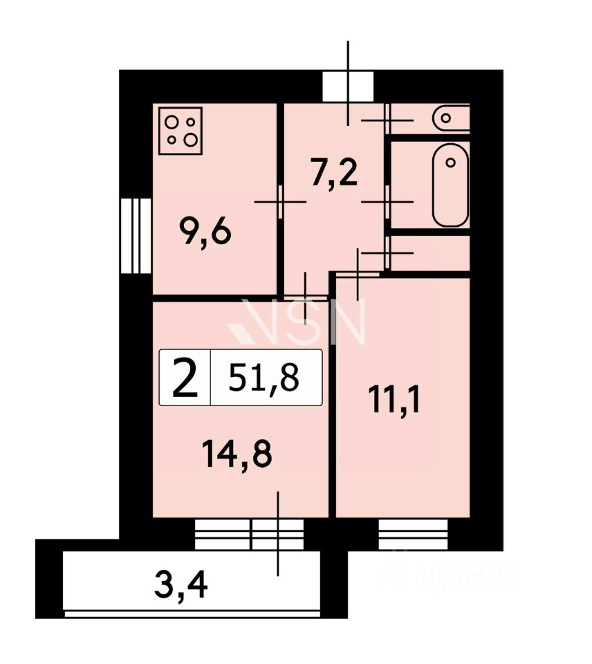 Лот: 267973 Выгодное предложение! В продаже двухкомнатная квартира общей площадью 51,8 кв. м! Высокий 8 этаж.