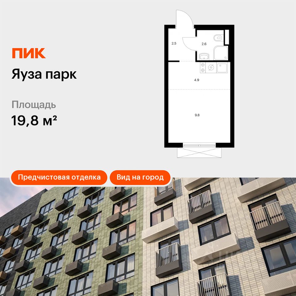 Продаётся квартира-студия площадью 19,8 кв.м на 11 этаже 24 этажного дома (Корпус 8, Секция 1) проекта ПИК Яуза парк. Светлый просторный подъезд на уровне земли, функциональная планировка, большие окна, предчистовая отделка.