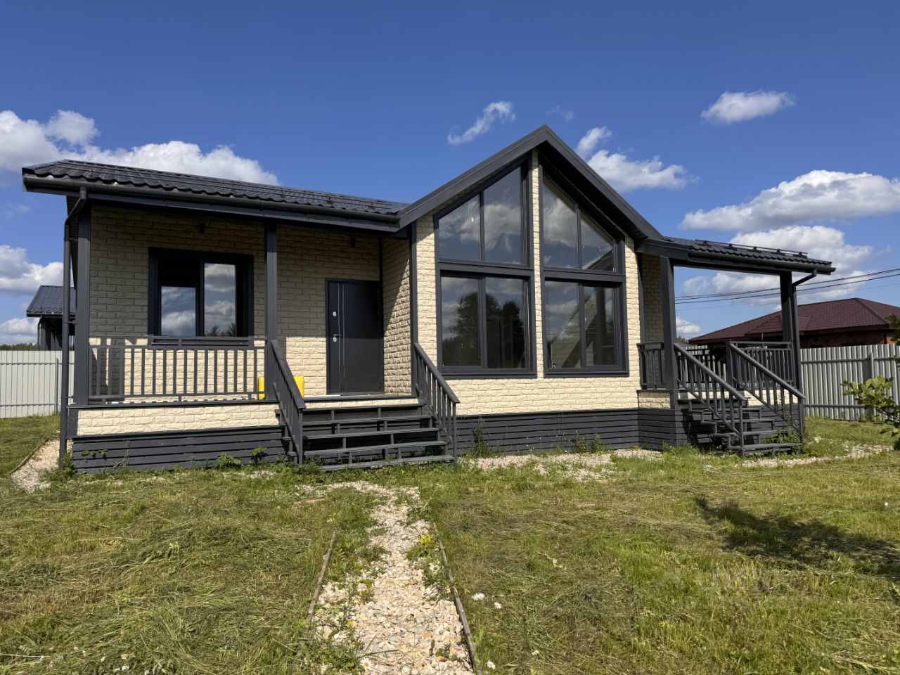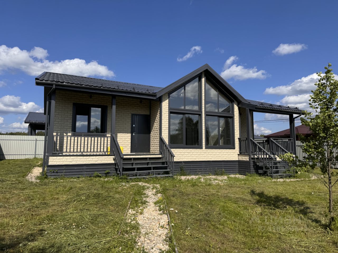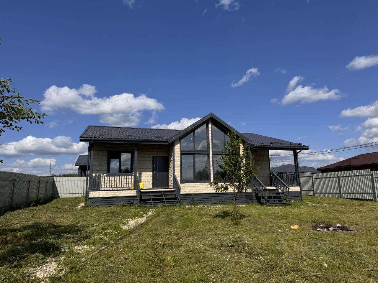 Продается новый дом , общей площадью 100 кв. м, —Кухня-гостиная + 3 изолированных комнаты, —Материал дома: каркас, —Облицовка: сайдинг, —Кровля: металлочерепица , —Фундамент: ЖБИ сваи , —Два сан/узла, По всему дому установлено освещение, сделано заземление, греющие кабеля. Установлена водосточная система, установлены снегодержатели, утеплены перегородки, установлена вентиляция в кровле и в сан/узлах. Коммуникации: —Электричество 15 кВт, —Водоснабжение: центральное, —Канализация: септик автономный, —Отопление: электрический котел, Участок 7,6 соток: —Сделано межевание, —Огорожен: профлистом , ворота откатные. —Участок ровный, сухой, правильной прямоугольной формы. Ближайший крупный населенный пункт - г. Наро-Фоминск, находится в 57 км от МКАДа по Киевскому направлению. Ближайшие шоссе (автомагистрали): Киевское шоссе, Минское шоссе. Отличное транспортное сообщение, ходит общественный транспорт. Ипотека. Рядом платная рыбалка , магазины. Дом достраивается, сантехника , отопление, электрика входят в стоимость.
