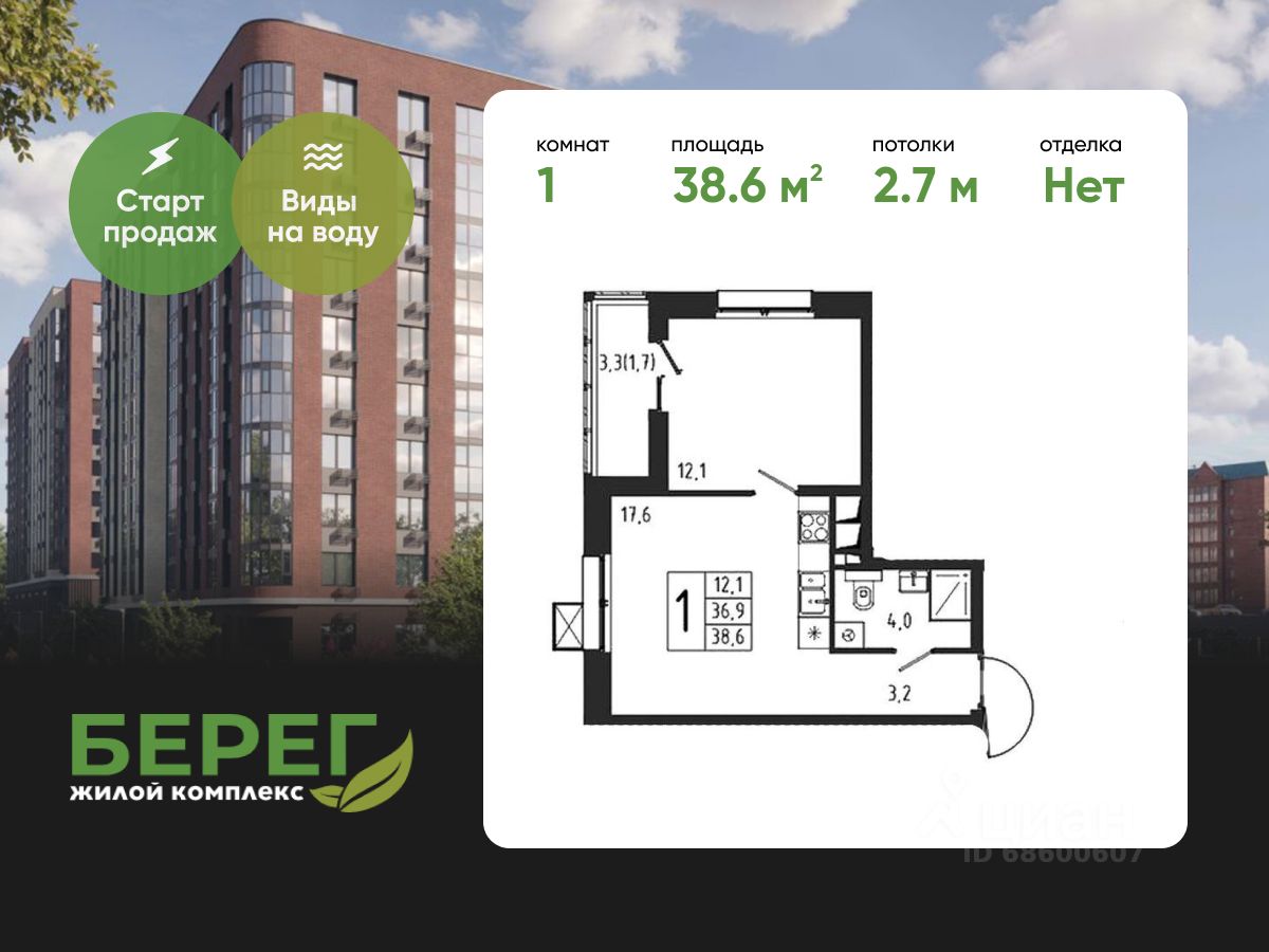 Продаётся 1-комнатная квартира в строящемся доме (Корпус 8 (2 очередь)), общей площадью 38.60 кв.м., на 7 этаже.