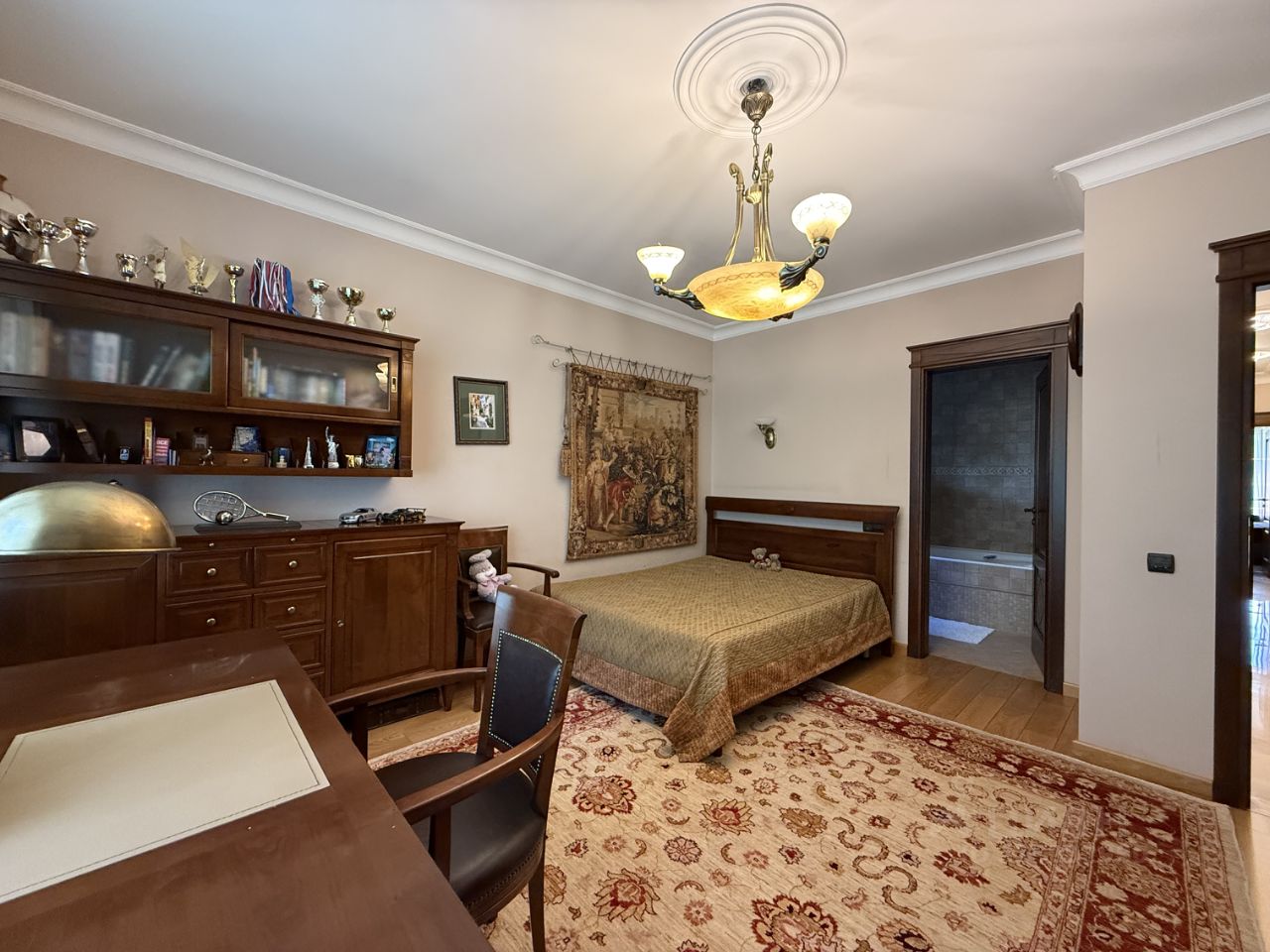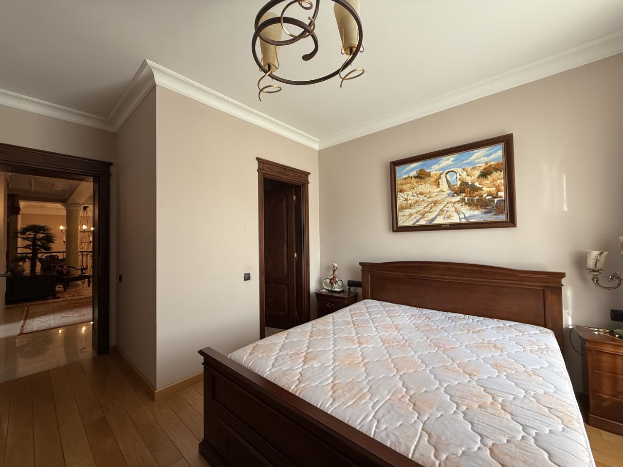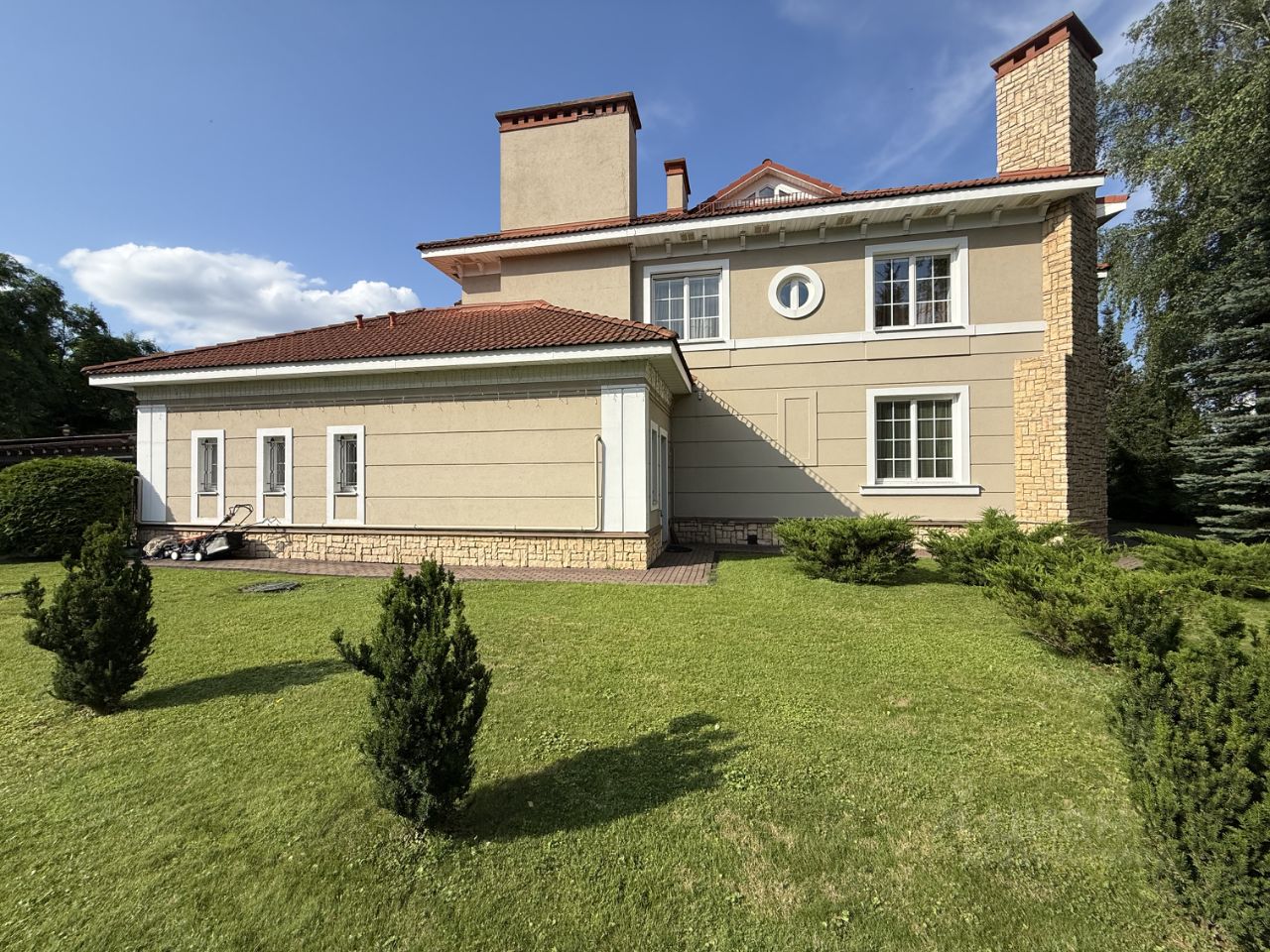 1 этаж: прихожая с гардеробной и гостевым санузлом, гостиная с камином и вторым светом, кухня и столовая с выходом на уличную веранду, кабинет, комната отдыха, построчная, котельная, гараж переоборудованный под спортзал. 2 этаж: четыре спальни у каждой санузел. 3 этаж: санузел, комната, которую возможно переделать в домашний кинотеатр, либо спортзал, сезонная гардеробная. Участок дома ухожен, высажены ели, березы и т.п. Во дворе оборудована крытая паковка с автоматическим освещением. Дом расположен в охраняемом коттеджном посёлке на 58 домов построенных в едином итальянском стиле. Поселок примыкает к Хлебниковскому лесопарку, также есть детская площадка, тюбинговая горка, пруд с уточками. Коммуникации центральные.