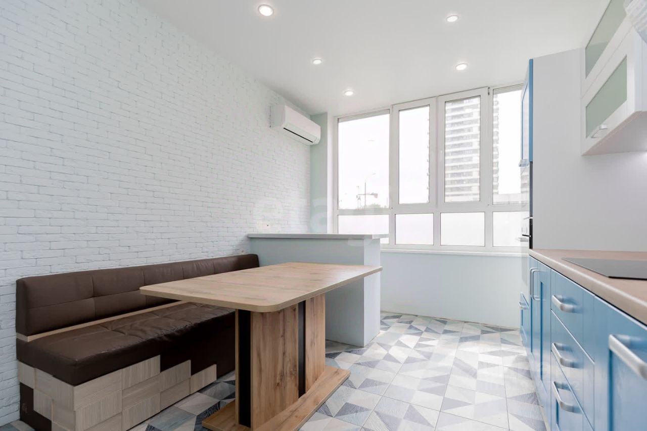 О КУХНЕ: -просторная кухня, расширенная за счет перепланировки балкона. На кухне есть вся необходимая техника премиальной марки: духовка, микроволновая печь, посудомойка Bosch, а так же кондиционер , большой обеденный стол и барная стойка. В раковине установлен измельчитель пищевых отходов и система очистки воды. Диван имеет достаточно большое раздвижное место для хранения.